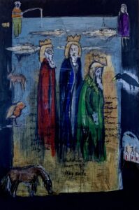 Inspired by the painting “The Magi and The Muse” from Natalie Twigg’s audiovisual work “The Gallery,” along with the gorgeous space of St Hilda St Patrick’s, the idea formed to bring this painting alongside other beautifully imagined works by gifted artists who live close by.